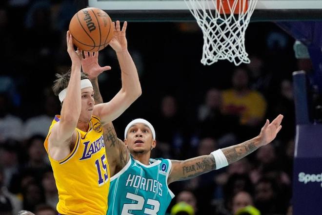 湖人上一场102-122惨负老鹰结束5连胜,黄蜂过去两场连续客场输给鹈鹕与热火遭遇2连败。本场湖人缺少詹姆斯与文森特、蒂耶罗,黄蜂缺少三球、米勒与格威等。首节开局湖人2-6,湖人连得4分追平,双方之后持续对攻缠斗至湖人15-16落后。湖人连得4分反超,双方继续缠斗至29-29,黄蜂连得5分,湖人连得4分追到差1分。塞克斯顿与布里奇斯各中一记三分,克内克特三分命中,首节结束湖人36-40落后黄蜂。东契奇8中5得到13分4助攻,布里奇斯6中6狂轰16分,其中外线三分4中4。